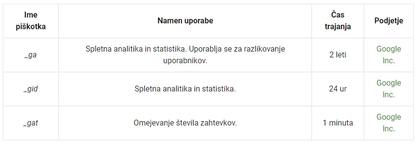 Na naši spletni strani uporabljamo piškotke (cookies). Piškotki so majhne txt datoteke, ki jih vaš brskalnik (Firefox, Chrome, Opera ali Internet Explorer), naloži na vaš računalnik kadar brskate po spletu.